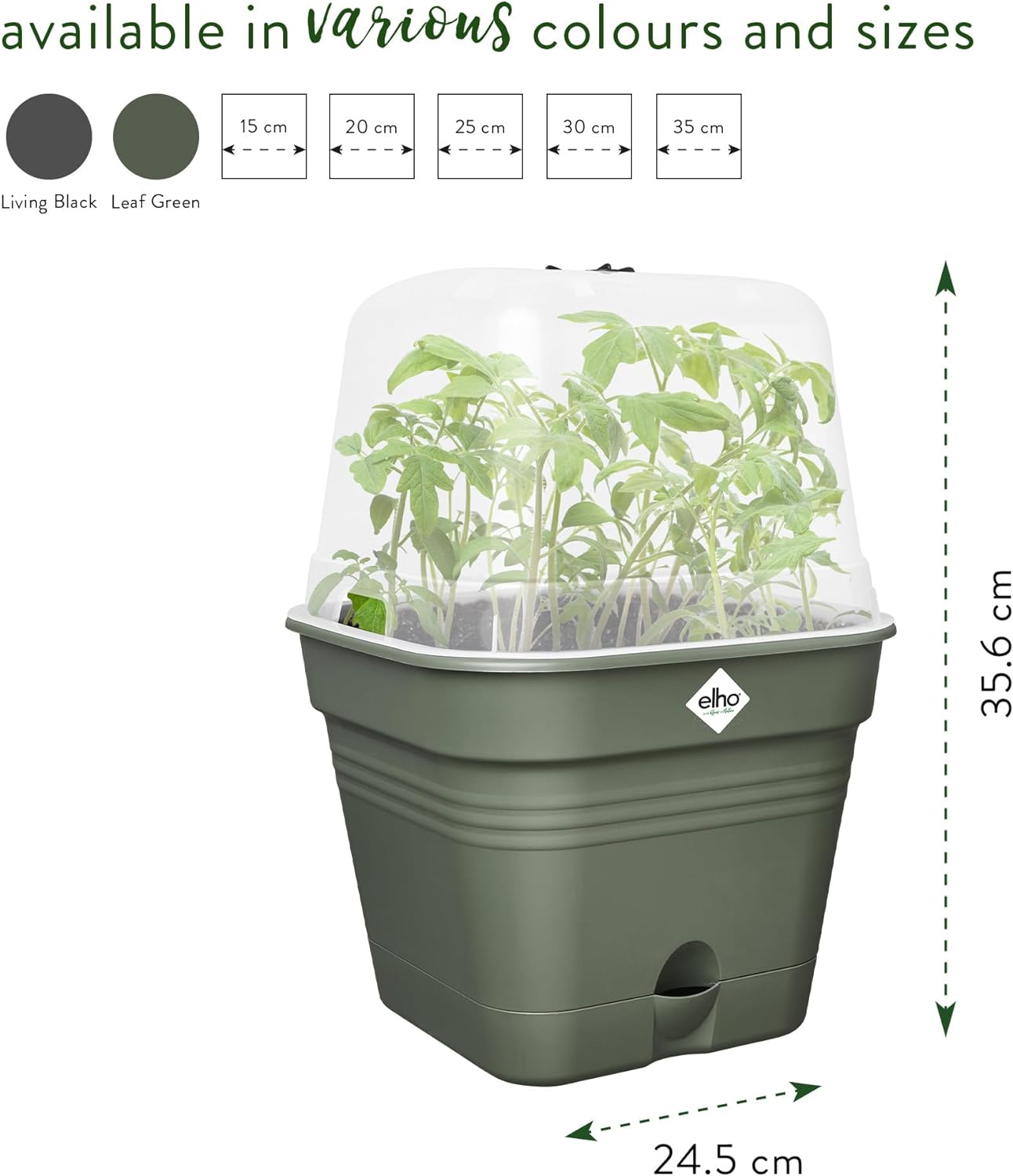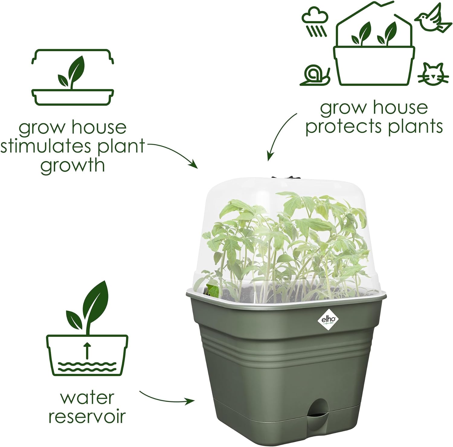 Would you like to try growing your own fruit, vegetables, and herbs at home? You can get started right now with the green basics growpot square all-in-1. This square cultivation pot is just the thing, wherever you want to start growing. Water is essential for healthy plant growth, so this growpot has an integrated water reservoir. Small plants also need to be well protected as they grow. That's why this cultivation pot comes with an integrated grow house. This is a top-quality product that you can enjoy for many years to come. This flower pot was made with love for nature: made from 100% recycled plastic, produced using wind energy, and 100% recyclable.