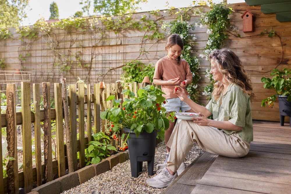 The elho green basics strawberry pot has a water reservoir and provides good drainage. This ensures that your strawberry plant will never be thirsty, but its roots won't risk getting too wet, creating the perfect conditions for healthy growth. An opening at the front of the pot makes watering easy.