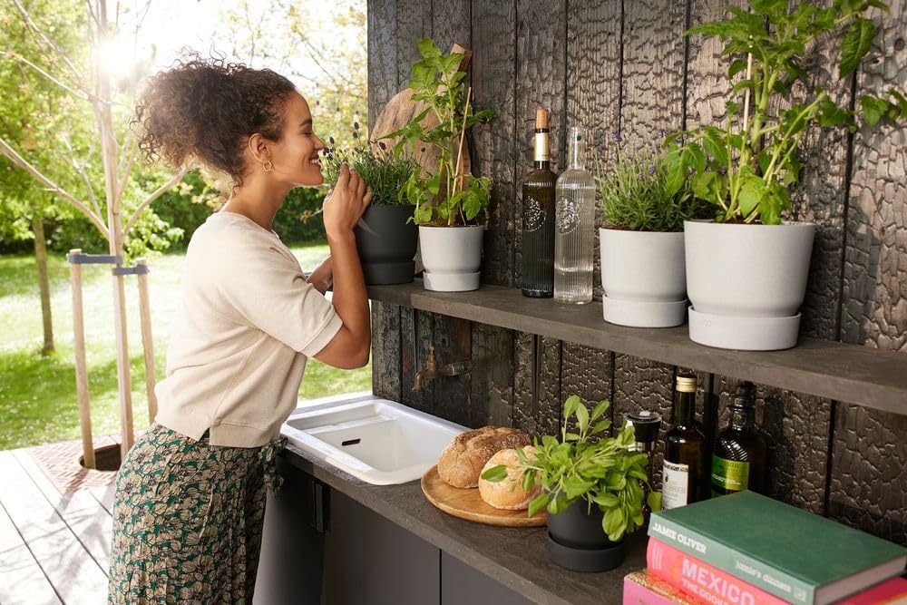 Whether you want to plant a single plant or green up your entire garden, our greenville flower pots are the right choice. The flower pots are available in various natural colours, and their sleek design will fit perfectly in your garden. Thanks to the integrated water reservoir, you can look after your plants without any effort. You can trust that our love for nature is reflected in how this pot was produced: it’s made from recycled plastic, produced with wind energy from our own windmill, and it’s also fully recyclable. The greenville collection has a modern, elegant design and is available in natural colours. As the various sizes and colours combine so well, the greenville is the ideal pot to mix & match. Create the perfect green atmosphere in your garden! These high-quality pots are made of 100% recycled plastic. They’re super strong and sturdy, frost-proof and colour-fast! All you have to do is enjoy your greenery, season after season.