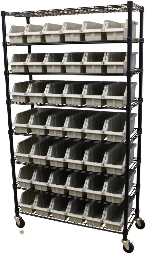 Seville Classics 8 Tier Commercial Racking with 42 Storage Bins on Wheels is backordered and will ship as soon as it is back in stock.