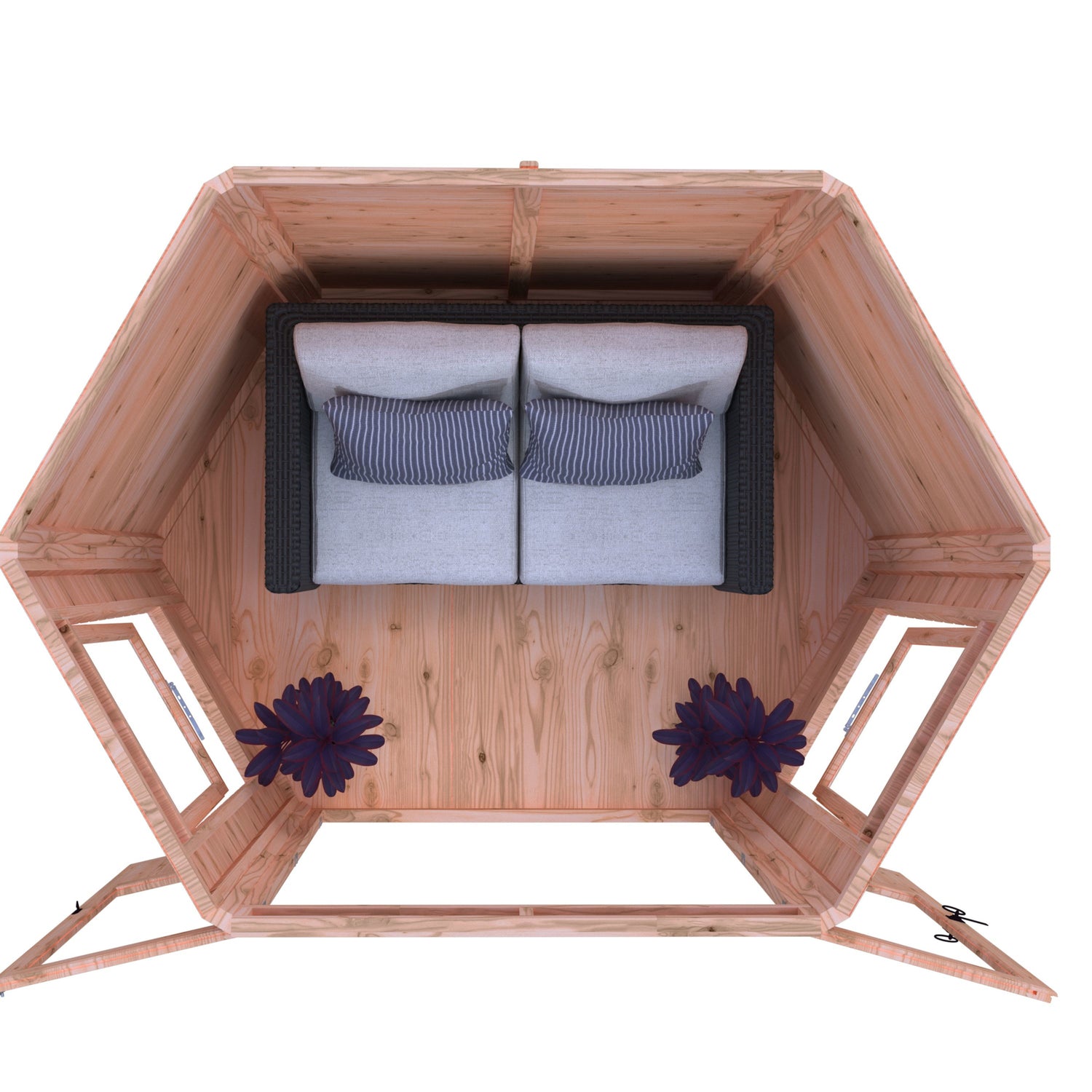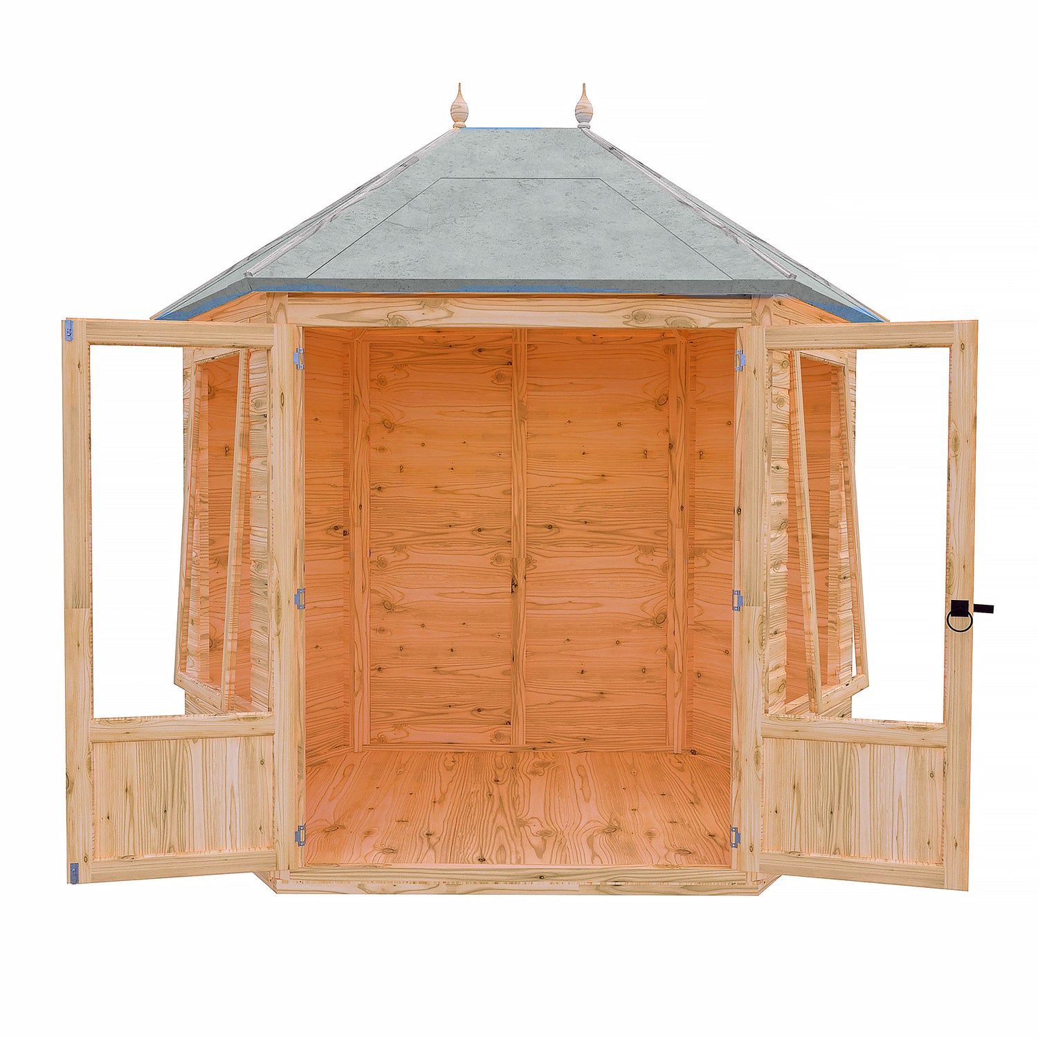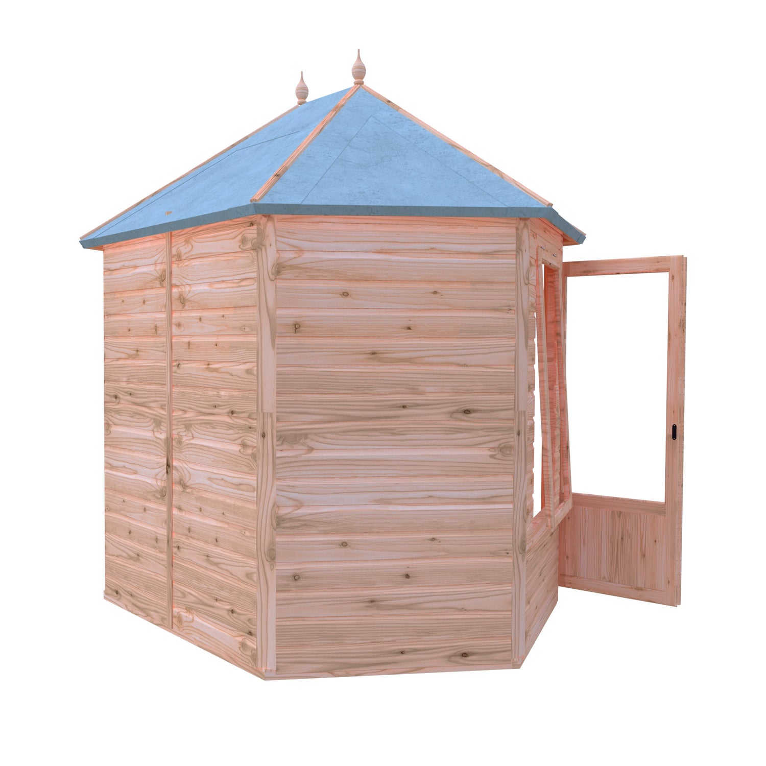 The attractively shaped Fleswick Summerhouse gives you an airy, light space to relax and it makes a stylish feature too. The summer house is constructed on 34mm square framing and clad with planed Shiplap tongue and groove boards made only from the highest grade, slow grown, FSC approved, northern European pine. The roof and floor are tongued and grooved timber. Complete with acrylic safety glazing and two opening windows. Dipped base coat preservative ready for you to top coat.