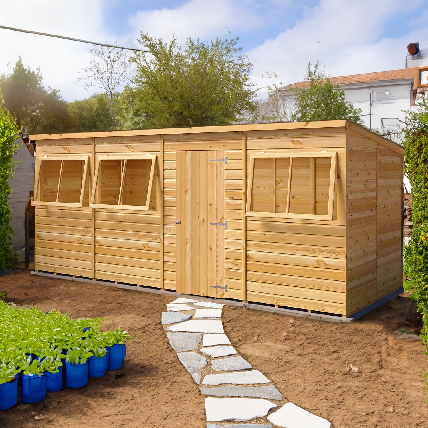 Compact garden shed ideal for all your tools, lawn mowers, bikes, toys; the list is endless! This Pent Shed has a joinery quality, storm resistant, opening glass window. Manufactured from high grade, FSC approved timber with 12mm shiplap tongue and groove cladding over sturdy 34mm square framing, OSB roof and T&G floor. A padlock friendly hasp & staple is supplied for the single door.