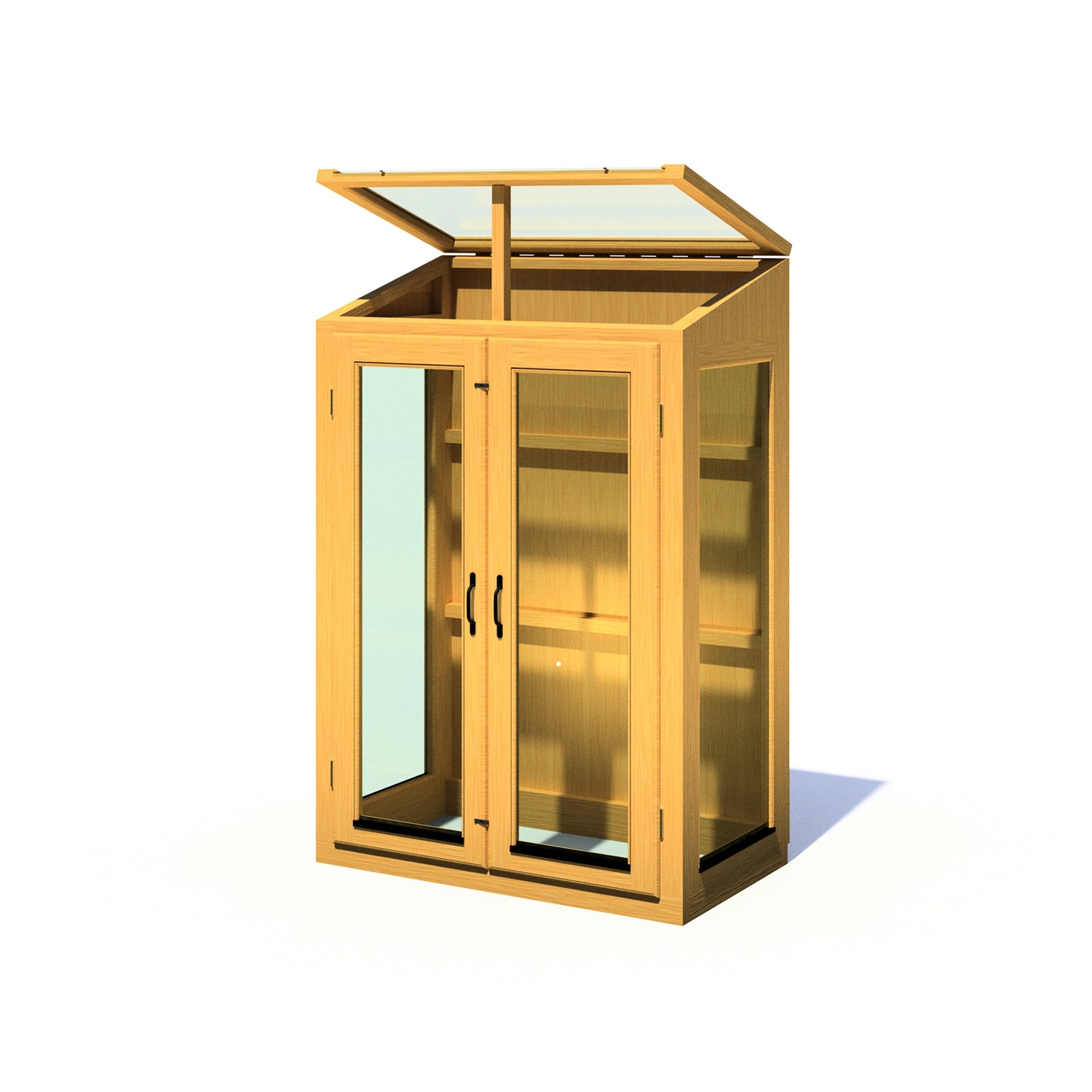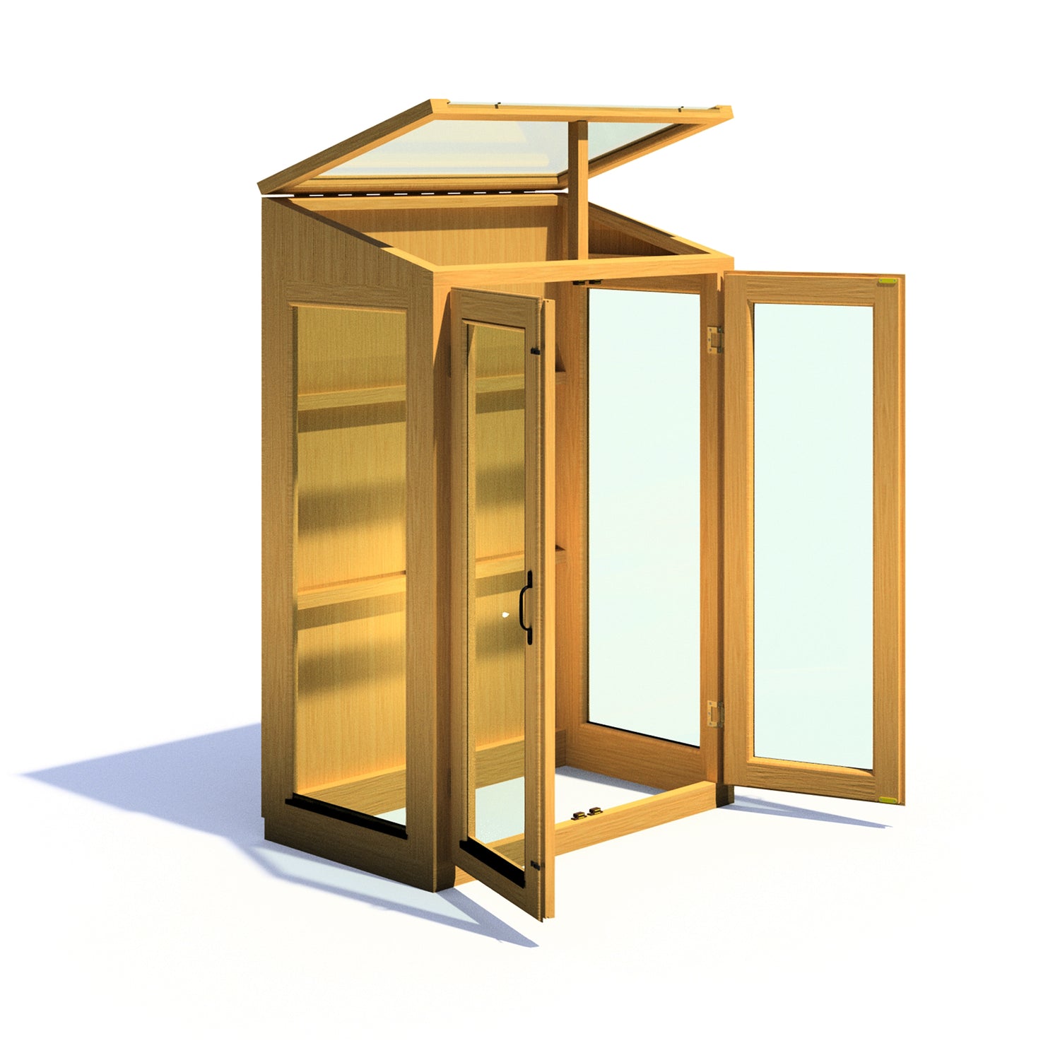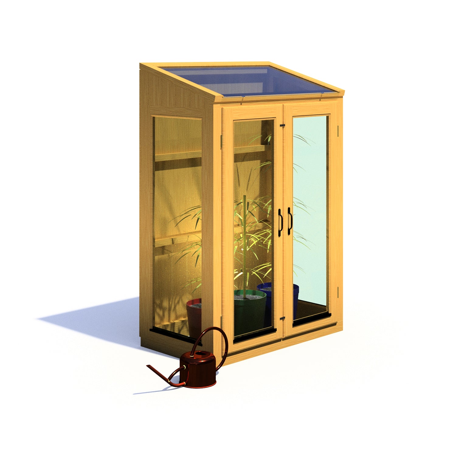 The Heydon is a very practical lean to greenhouse which will provide all the advantages of a timber greenhouse in a very compact design that also has a reduced height to utilise even the smallest space. The Heydon will make a feature of a plain wall as well as being a great asset if you "Grow Your Own". It is manufactured with high grade pine 34 x 58 mm framing, glazed with toughened glass and has double doors for easy access. The roof can be opened on a hot day to provide excellent ventilation. As usual with a greenhouse, no floor is supplied and the greenhouse sits on a pressure treated base rail. The wooden components have been dipped with a base coat preservative ready for you to top coat to your own preference. Assembly instructions included.