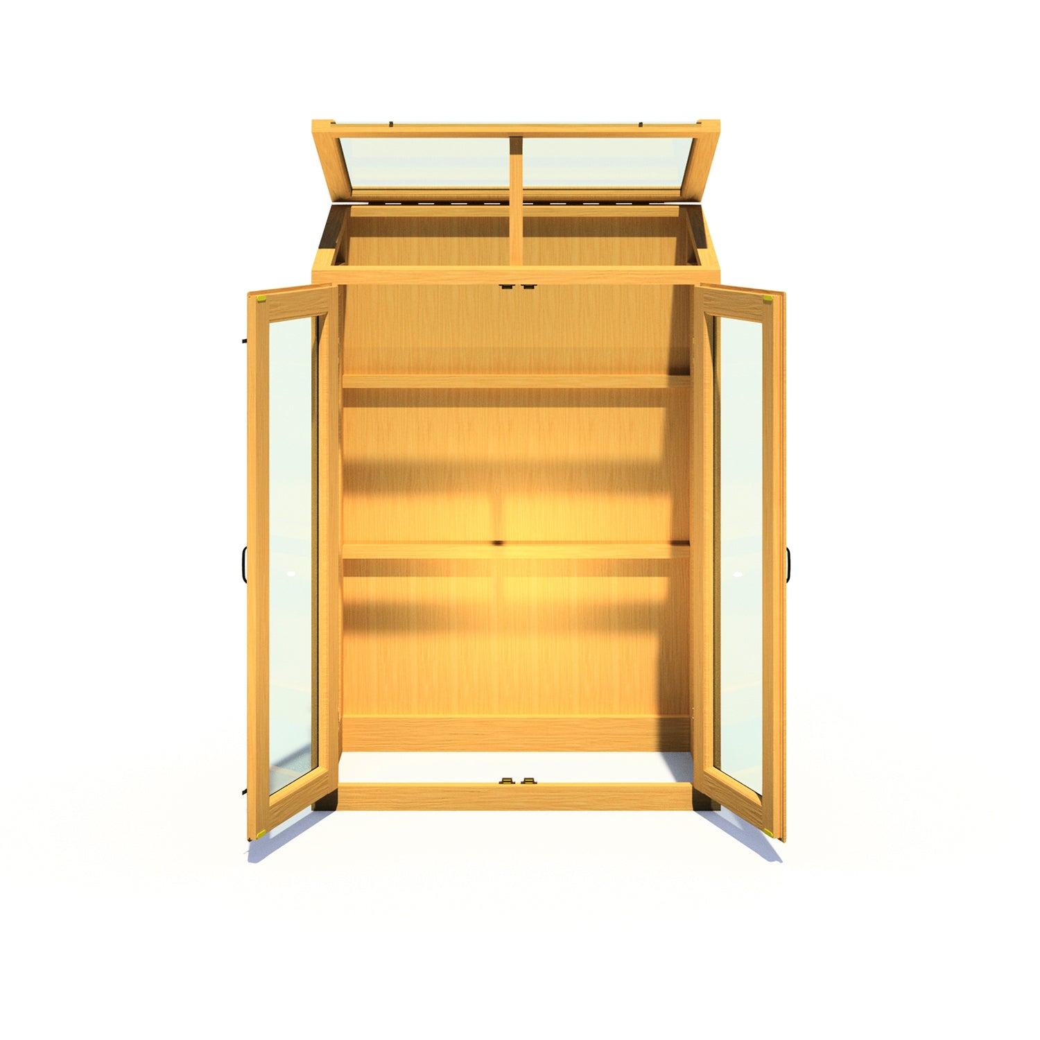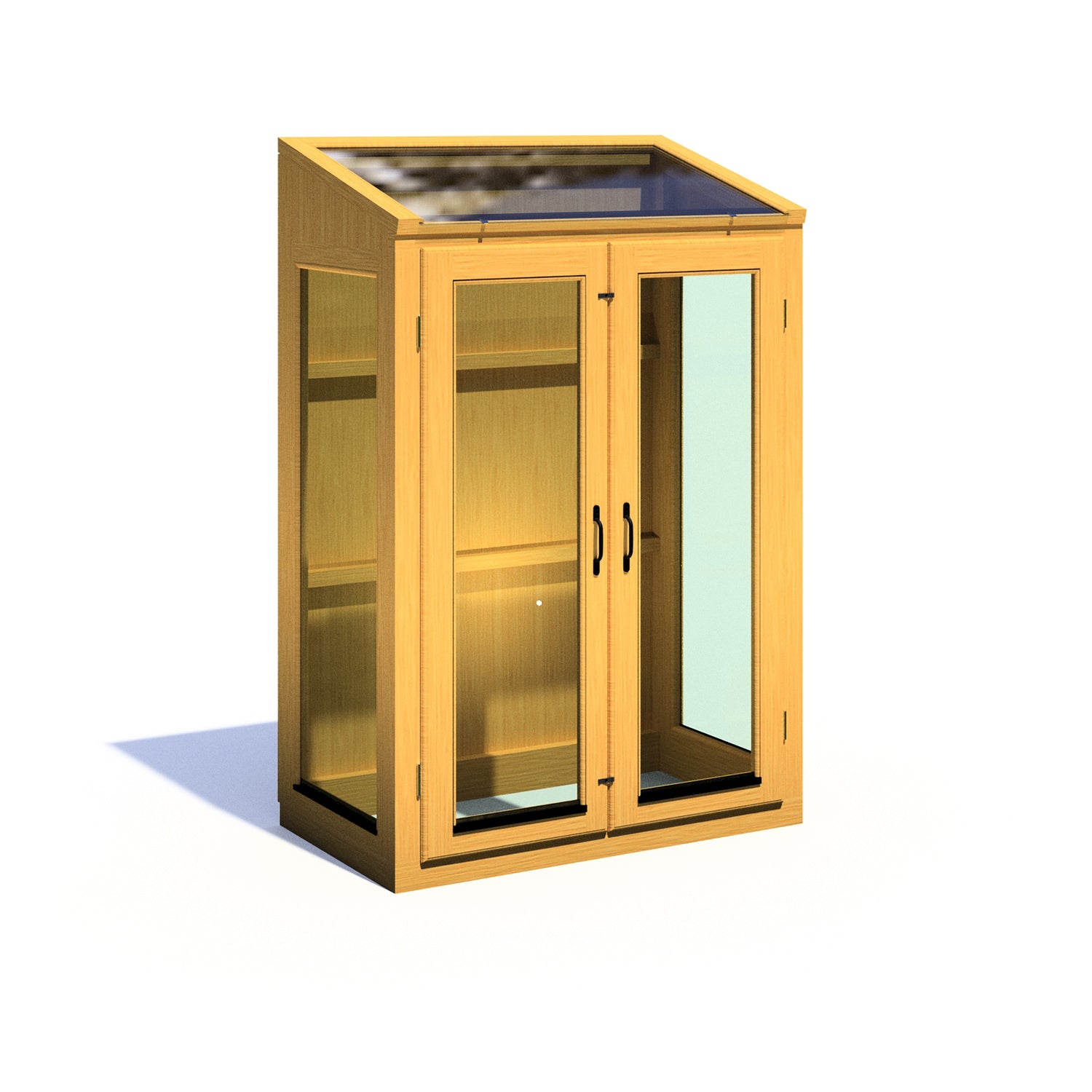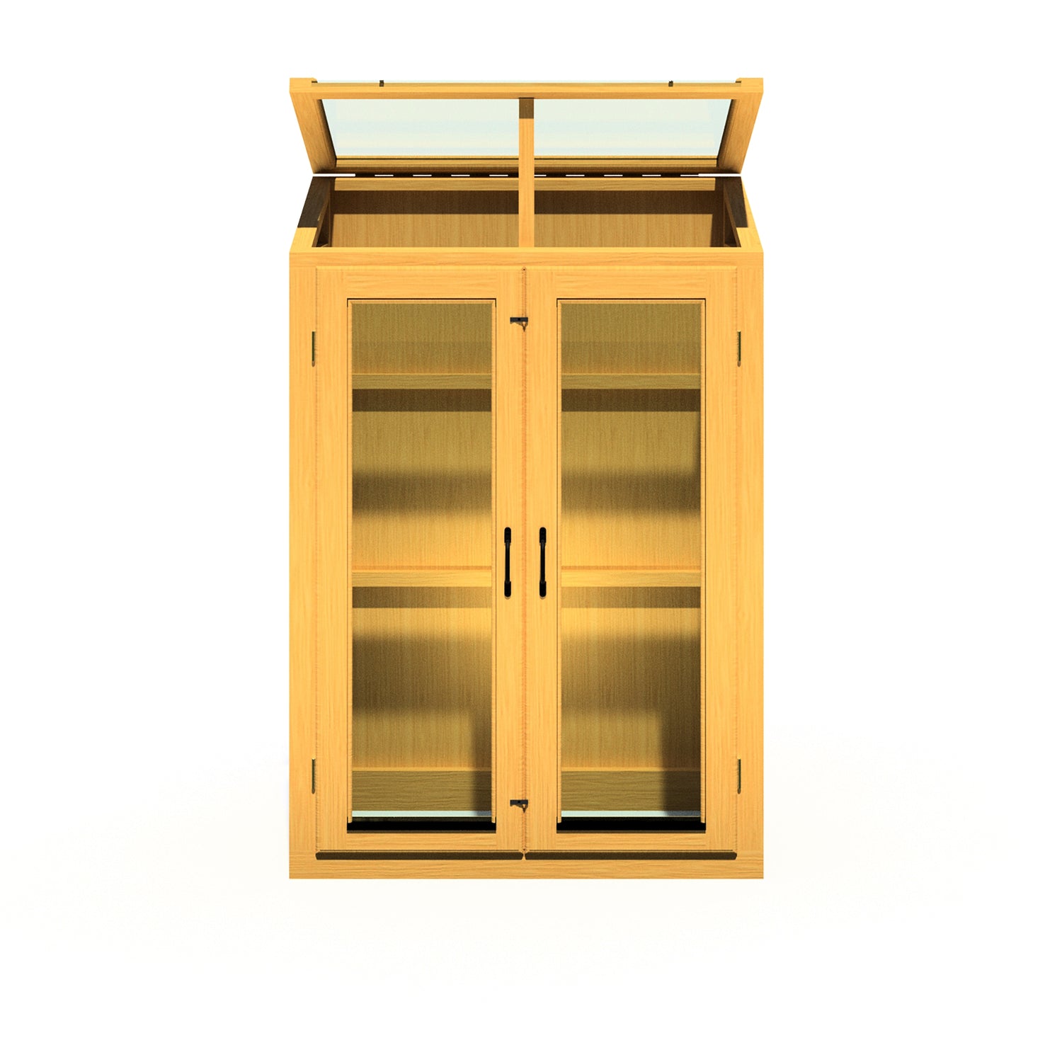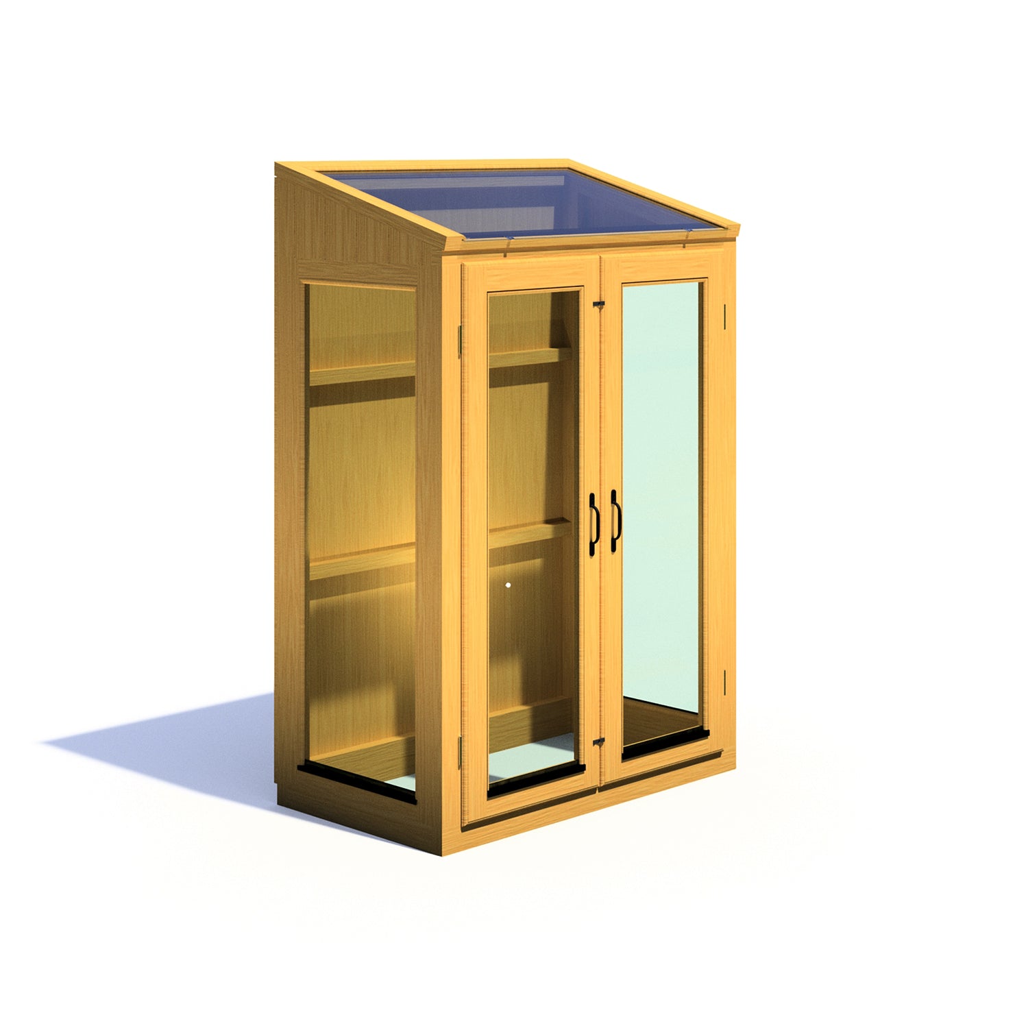 The Heydon is a very practical lean to greenhouse which will provide all the advantages of a timber greenhouse in a very compact design that also has a reduced height to utilise even the smallest space. The Heydon will make a feature of a plain wall as well as being a great asset if you "Grow Your Own". It is manufactured with high grade pine 34 x 58 mm framing, glazed with toughened glass and has double doors for easy access. The roof can be opened on a hot day to provide excellent ventilation. As usual with a greenhouse, no floor is supplied and the greenhouse sits on a pressure treated base rail. The wooden components have been dipped with a base coat preservative ready for you to top coat to your own preference. Assembly instructions included.