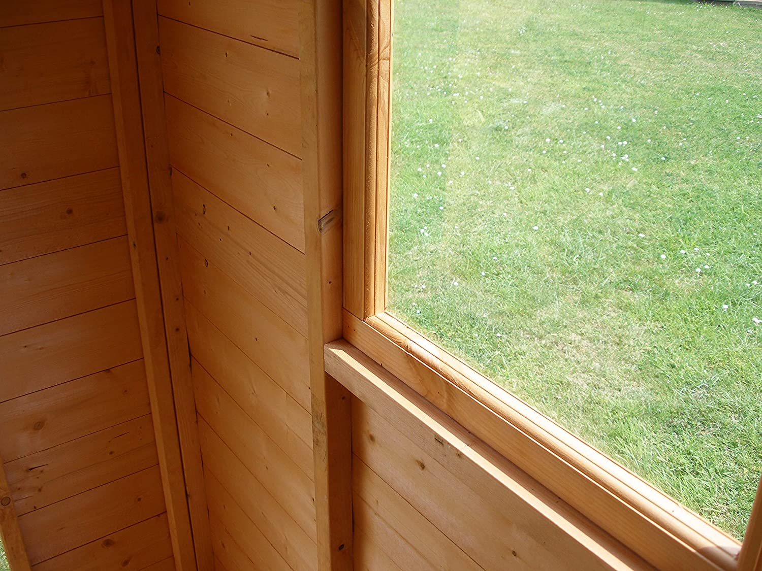 This handmade Lewis shed is superb value for money. The shed is supplied with top quality 12mm Shiplap timber to the walls roof and floor all on sturdy 34mm square framing. The door comes with a full length security hinge and windows are fixed. Doors and window frames are pre-hung for easy assembly and the door can go at either end. The Lewis comes with a base coat preservative ready for you to top coat after assembly. Roof felt and all necessary fixings are supplied and the shed comes flat packed with a full set of installation instructions. Dimensions shown are for the exterior wall of the building (Imperial measurements are rounded so please refer to the metric sizes for accuracy).
