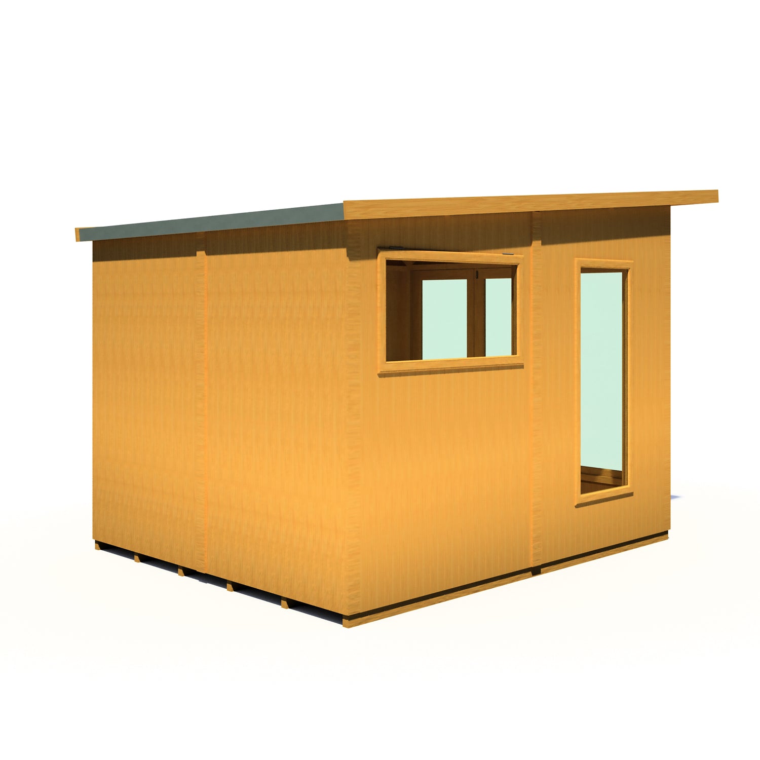 The contemporary Miami Summerhouse is a stunning design updating the traditional summerhouse into a modern garden room. The high quality double doors open out to the front with a small canopy over and the doors are also fitted with a mortice lock. There are three large fixed windows and two small opening windows to give lots of natural light. The windows and doors are fitted with acrylic safety glazing and are joinery made in a storm resistant design. The building is constructed on strong 44 x 70 mm (2" x 3")  square framing and clad with planed shiplap tongue and groove boards made only from the highest grade, slow grown, FSC approved, northern European pine. The roof is 12mm T&G with mineral roof felt supplied to complete the exterior. The floor is strong 16 mm T&G. Dipped base coat preservative ready for you to top coat.