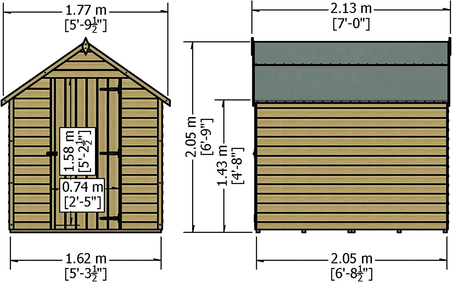Great Value overlap shed! This pressure treated shed features a pressure treated finish which gives a longer life with low maintenance and is an ideal addition to your garden. It is manufactured from high grade, slow grown, FSC approved, European pine cladding boards over sturdy 34mm square framing.