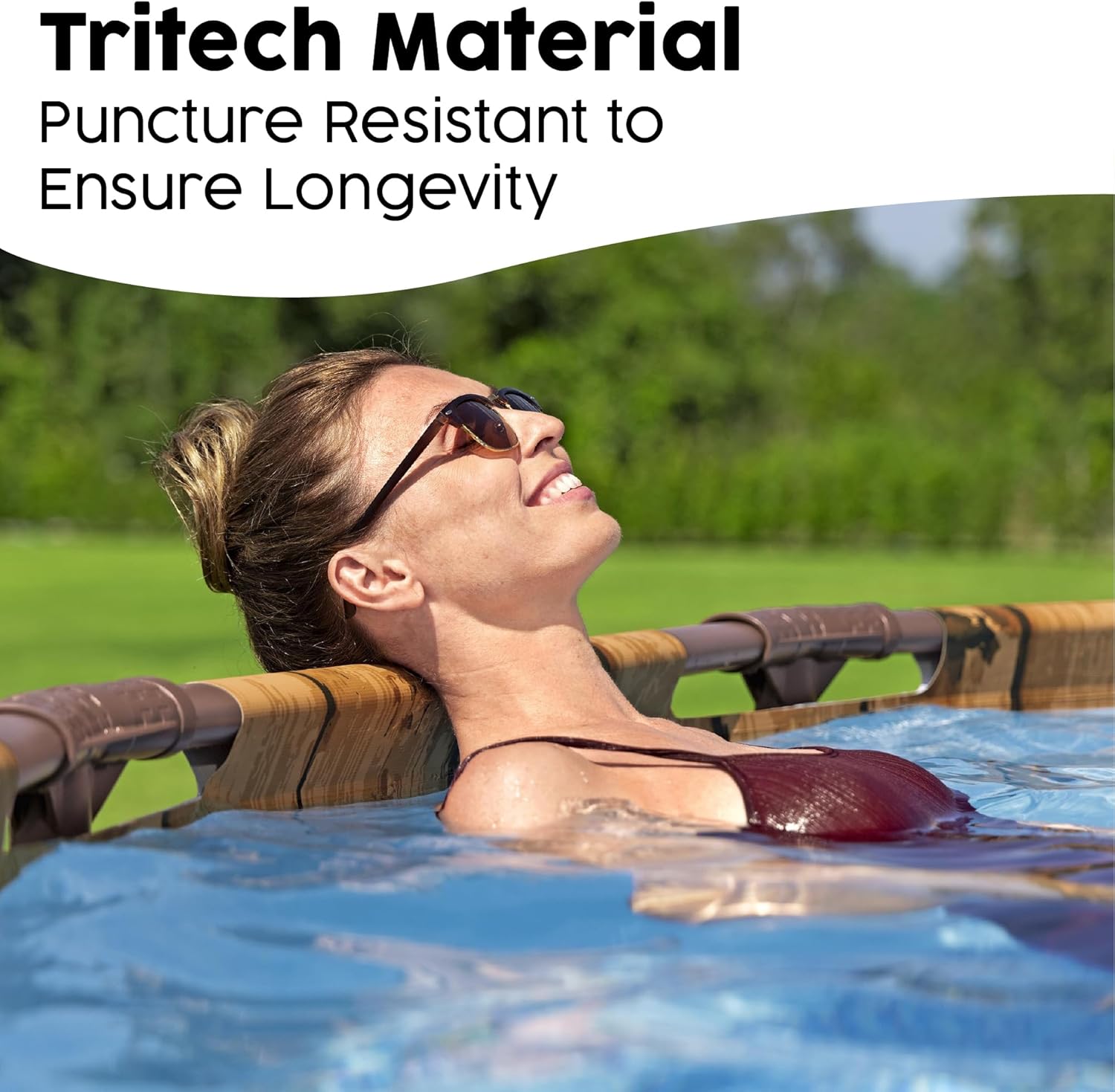 The sturdy Tritech® liner is made out of an ultra-durable 3-layer material that is reinforced for strength and puncture resistance. Tritech is 15% more tear-resistant, 33% more stretch-resistant and 83% more puncture-resistant than standard PVC, ensuring your above ground pool will last summer after summer.