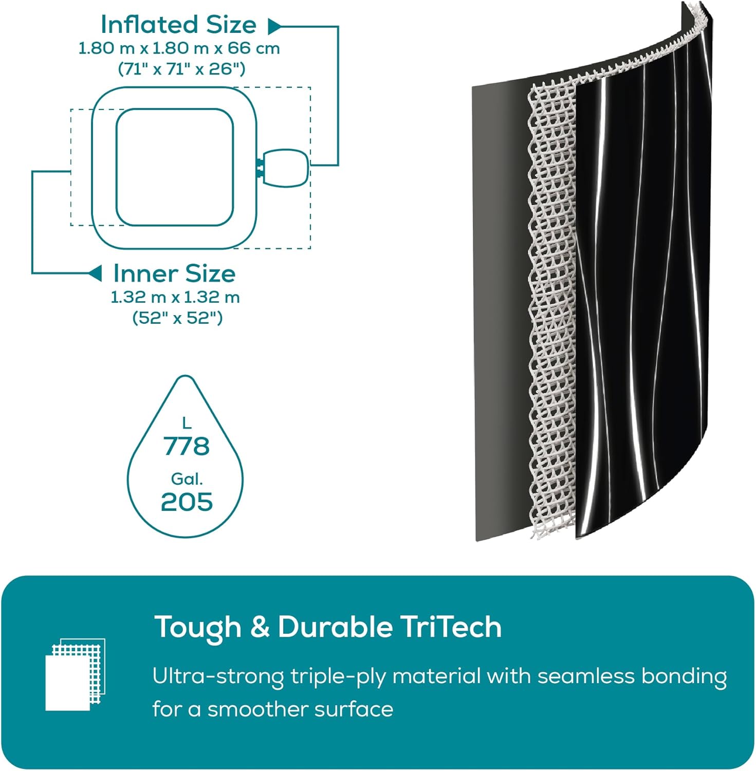 ULTRA DURABLE TRITECH CONSTRUCTION: Tough, seamless triple-layer material ensures long-lasting strength, stability, and comfort.