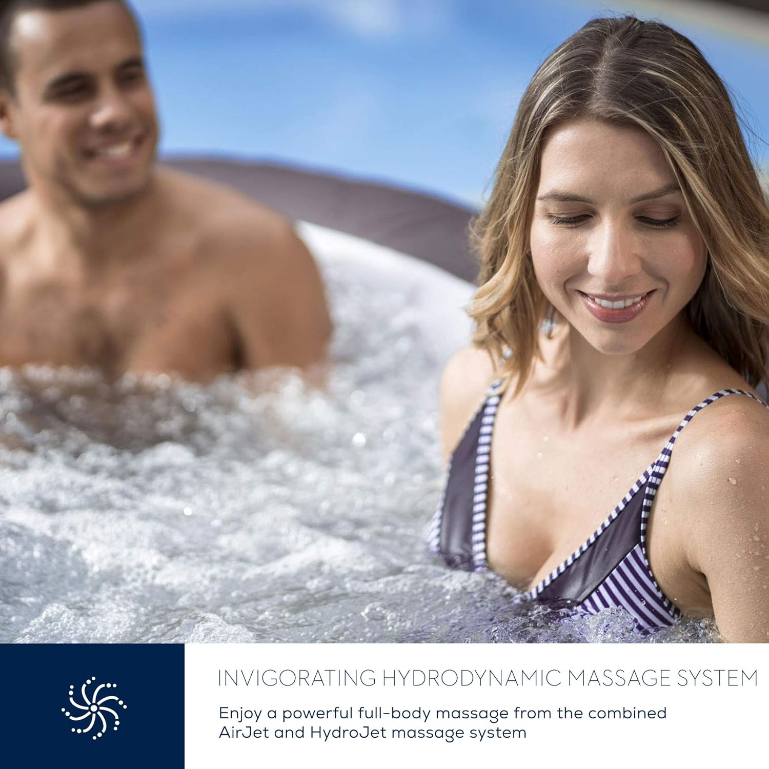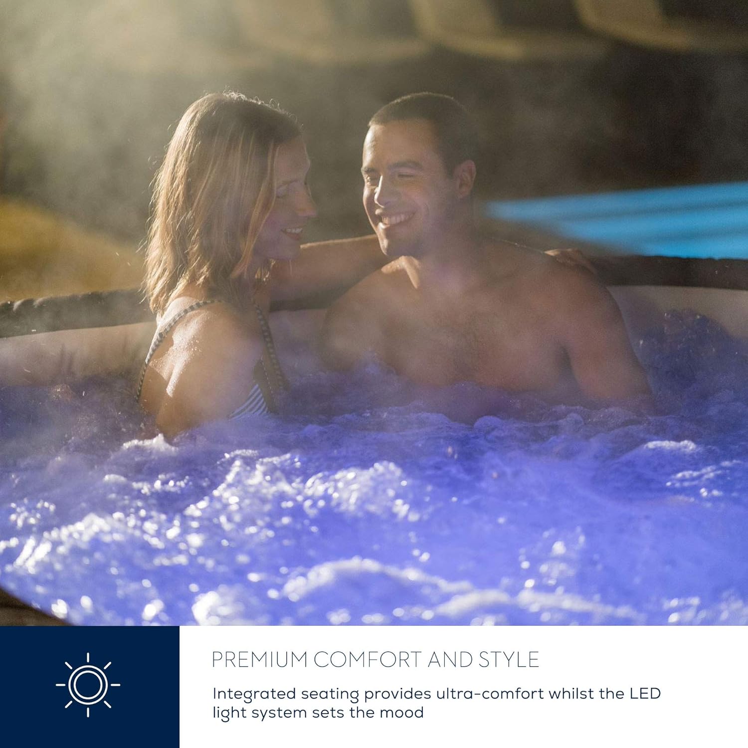 UNRIVALLED COMFORT AND RELAXATION: thanks to the powerful 8 HydroJet and 180 AirJet massage system, inflatable seating, foot massager and Aqua Glow LED lighting