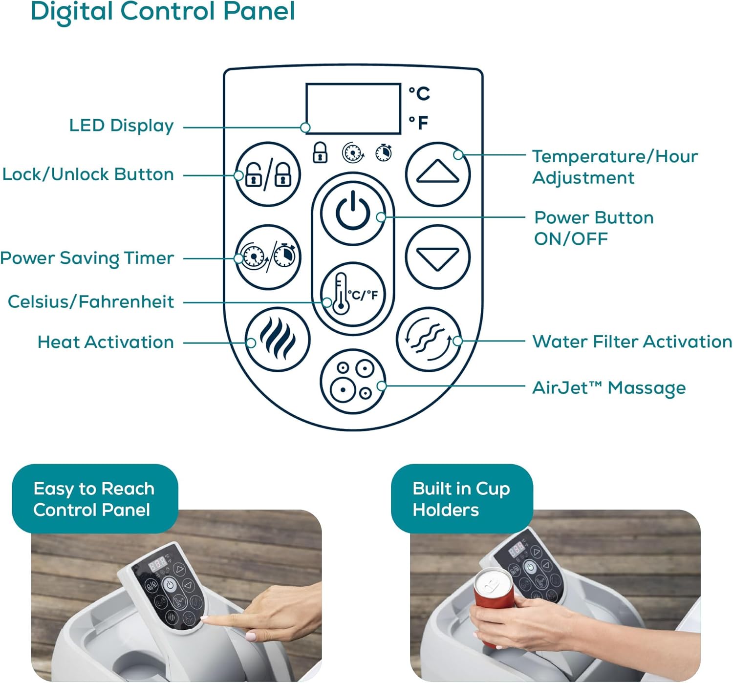 MASSAGE SYSTEM: 140 AirJet Massage System gives an all-surrounding invigorating and therapeutic bubble massage for up to 6 people, ensuring relaxation for family and friends.