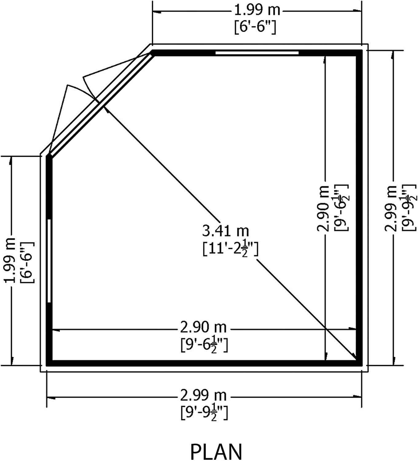 The handmade Hampton summerhouse is a superb way of making the most of what can be a boring part of the garden or patio! Designed to fit neatly into the corner, the Hampton makes a perfect retreat. The building has two, joinery quality, opening windows and fully glazed, lockable double doors allowing plenty of light; all glazing is glass. It is constructed on strong 44mm square framing and clad with planed 12mm Shiplap tongue and groove boards made only from the highest grade, slow grown, FSC approved northern European pine. The roof and floor are tongued and grooved timber. Dipped base coat preservative ready for you to top coat.