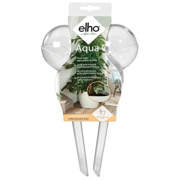 The easiest and most user friendly watering system for your plant ever: the elho aqua care! Do you love plants, but often forget to water them? This unique watering system ensures that your indoor plants always get the right amount of water. Easy and fast: fill the ball with water and stick it at a slight angle in the soil all the way under the roots. The aqua care then releases water whenever necessary. The aqua care is made of unbreakable material for extra convenience and features a wide spout so it can’t get clogged with soil. Perfect for when you’re gone for the weekend!
