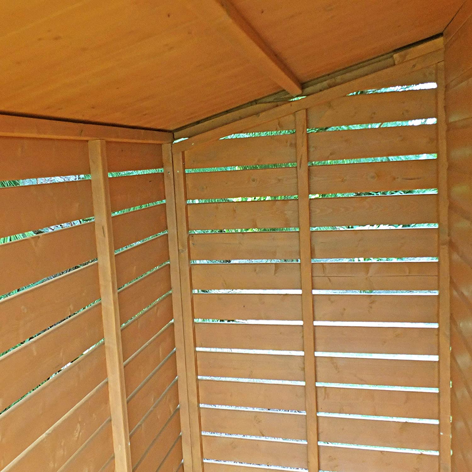 This handmade Shed with Log Store combines all your garden needs in one high quality building. The shed is supplied with best 12mm Shiplap timber to the walls roof and floor all on sturdy 34mm square framing. The door comes with a full-length security hinge and the window is opening. Doors and window frames are pre-hung for easy assembly and the door can go at either end. The shed comes with a base coat preservative ready for you to top coat after assembly. Roof felt and all necessary fixings are supplied, and the shed comes flat packed with a full set of installation instructions. The log store is made to the same height specification as the shed but has slatted walls to promote airflow around the logs to allow drying. Dimensions shown are for the exterior wall of the building (Imperial measurements are rounded so please refer to the metric sizes for accuracy).