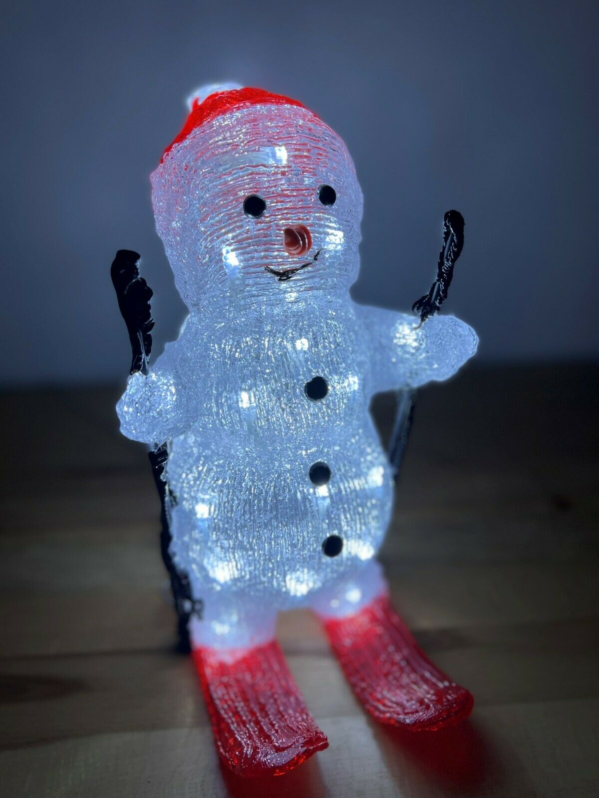 29cm Acrylic Skiing Snowman With 30 Ice White LEDs.