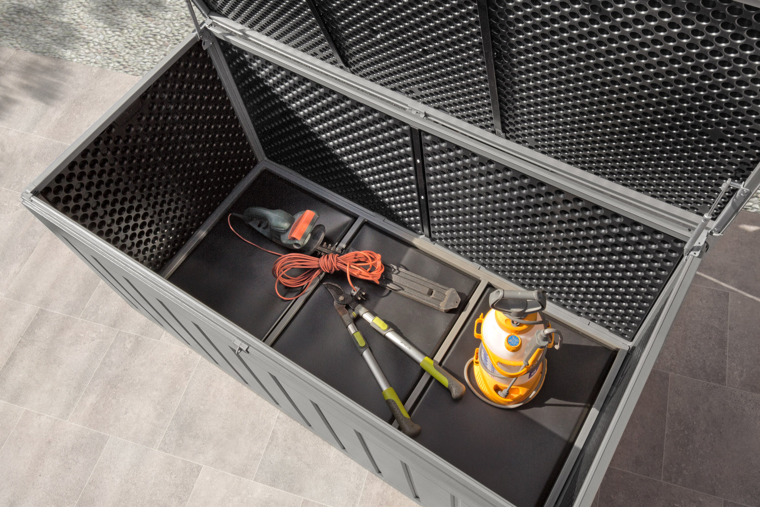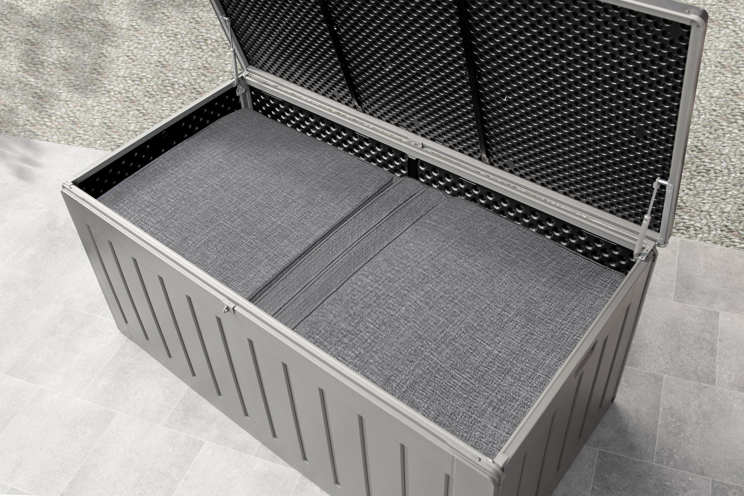 BUILT FOR OUTDOOR USE - The large plastic storage box is perfect for keeping your garden space neat and tidy. It is ideal for storing tools, toys and games, small to medium items of furniture, cushions, accessories and much more.