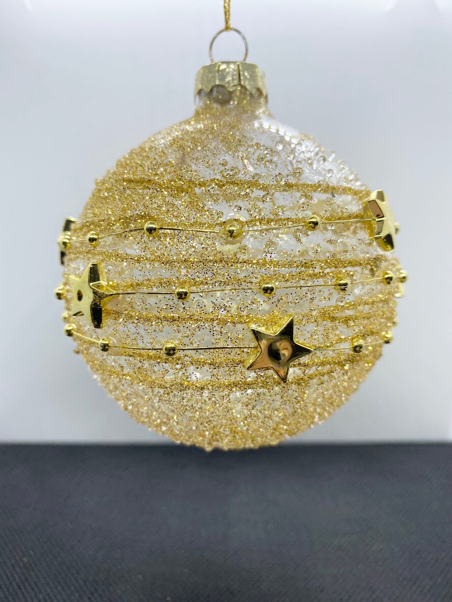 Set of 3 Gold Star Bead Christmas Tree Decorations 80mm