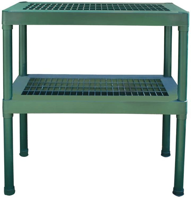 The 2-Tier Staging Bench is a handy freestanding potting station for any greenhouse. It’s made of sturdy, easy-to-clean polypropylene that’s fashioned with perforations to allow optimal drainage and airflow. This lightweight but durable planting bench occupies minimal floor space while tripling your staging area. It assembles easily without tools and hoses off harmlessly for hassle-free upkeep.